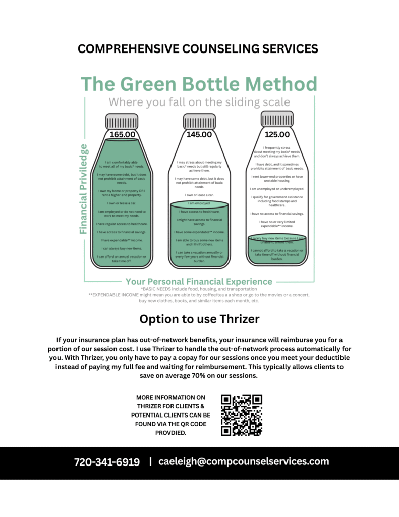 Sliding Scale: We offer a sliding scale to all self-pay individual counseling clients. Please see the flyer below for more information.